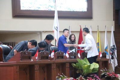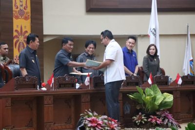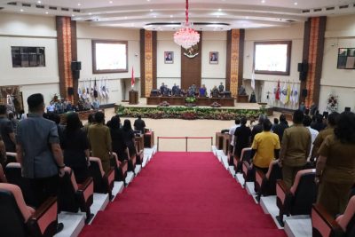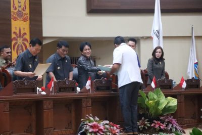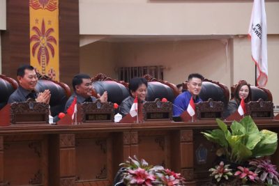 SULUT,ManadoTEMPO – Ketua DPRD Sulut, dr.Fransiscus Andi Silangen, SpB KBD, didampingi oleh Wakil Ketua Royke Anter, SE.ME dan Stela M. Runtuwene, AMd.Sek memimpin rapat paripurna DPRD Sulut, Selasa, 24 Juni 2025 diruang Rapat Paripurna Kantor DPRD Sulut.