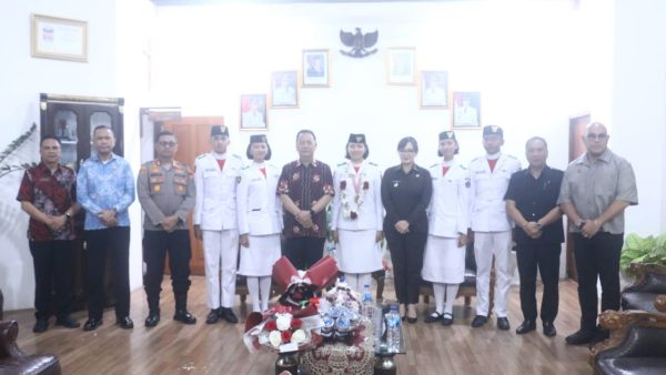 Walikota Tomohon Caroll JA Senduk SH menerima kembalinya Bianca Alessia Christabella Lantang usai bertugas sebagai Paskibraka Nasional pada Upacara Peringatan HUT ke-80 Proklamasi Kemerdekaan RI di Istana Merdeka Jakarta, (22/8)2025) di Kantor Walikota Tomohon.