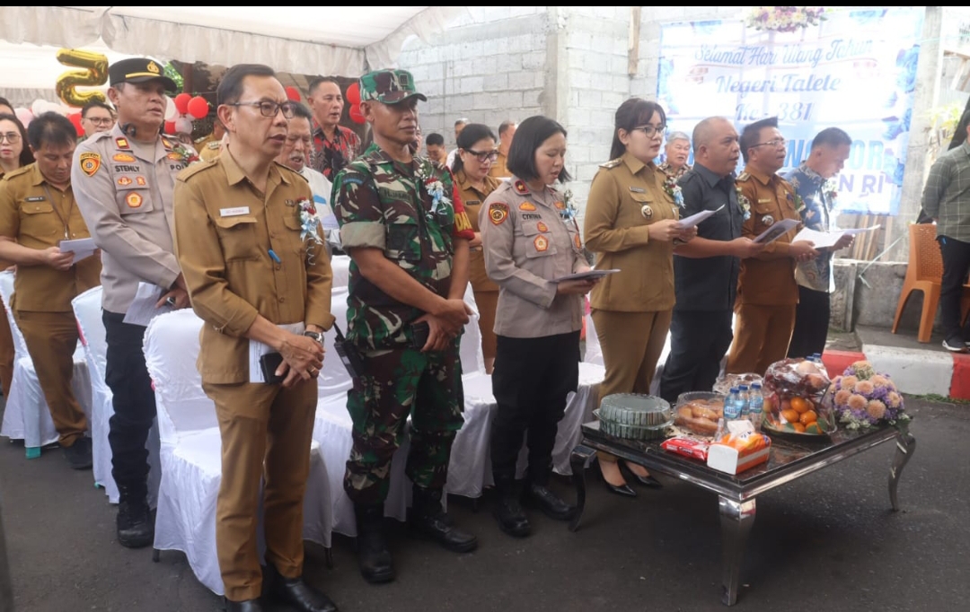 Dalam kesempatan tersebut, Wakil Wali Kota Tomohon yang juga Ketua Umum Panitia HUT Negeri Talete ke-381 membacakan sambutan Wali Kota Tomohon. Ia menyampaikan ucapan selamat atas perayaan hari bersejarah Negeri Talete yang berdiri sejak 10 Agustus 1644 hingga 10 Agustus 2025.