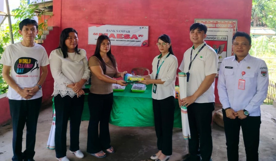 Sebagai wujud tanggung jawab dalam menjaga dan memelihara lingkungan agar tetap bersih dan sehat, PT Pegadaian Amurang memberikan bantuan fasilitas bank Sampah kepada Bank Sampah Maesa Desa Rumoong Bawah Kecamatan Amurang Barat, Rabu 17 September 2025.