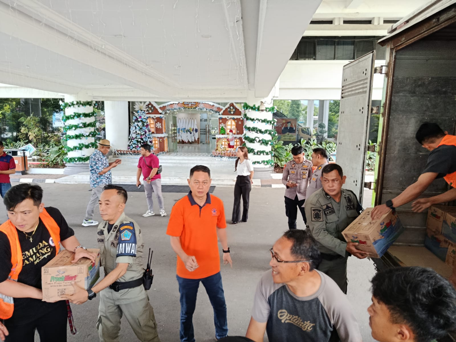 Wakil Gubernur Sulawesi Utara, Victor Mailangkay, secara langsung menyambut dan menerima berbagai bantuan di Posko Bantuan Pemprov Sulut, Kamis 08 Januari 2026. Dalam kegiatan tersebut, Satuan Polisi Pamong Praja (Satpol PP) Sulut turut berperan aktif membantu operasional posko, mulai dari pengamanan, pengaturan distribusi, hingga membantu proses bongkar muat bantuan.