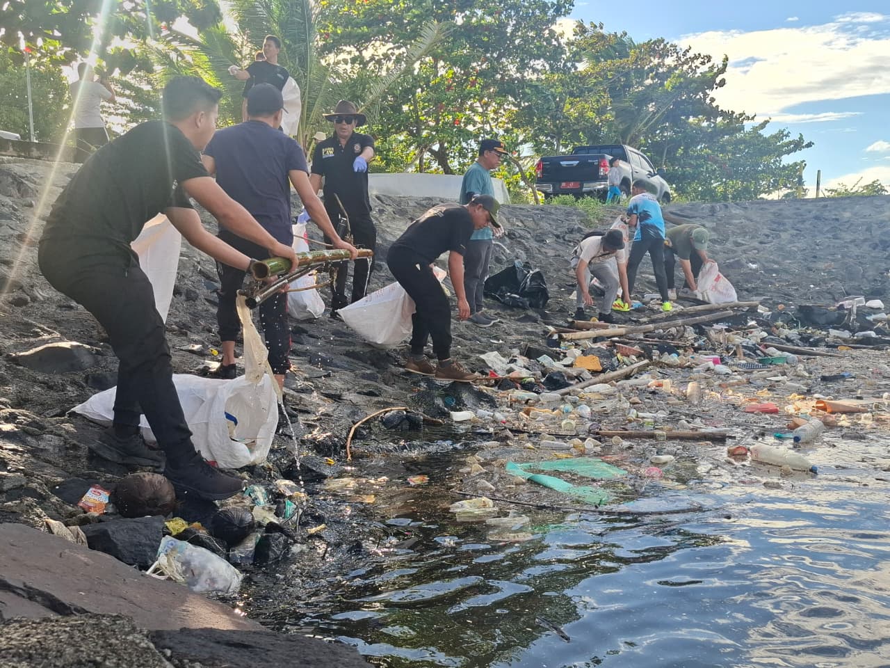 Kasatpol PP Sulut Farly Kotambunan, SE, di lokasi kegiatan mengatakan sebanyak 115 personel dikerahkan untuk mendukung aksi bersih-bersih tersebut. Hingga siang hari, sampah yang terkumpul mencapai 135 karung di lokasi kerja bakti sekitar Tempat Pelelangan Ikan (TPI) Tumumpa, Jl. Pogidon VIII Boulevard.