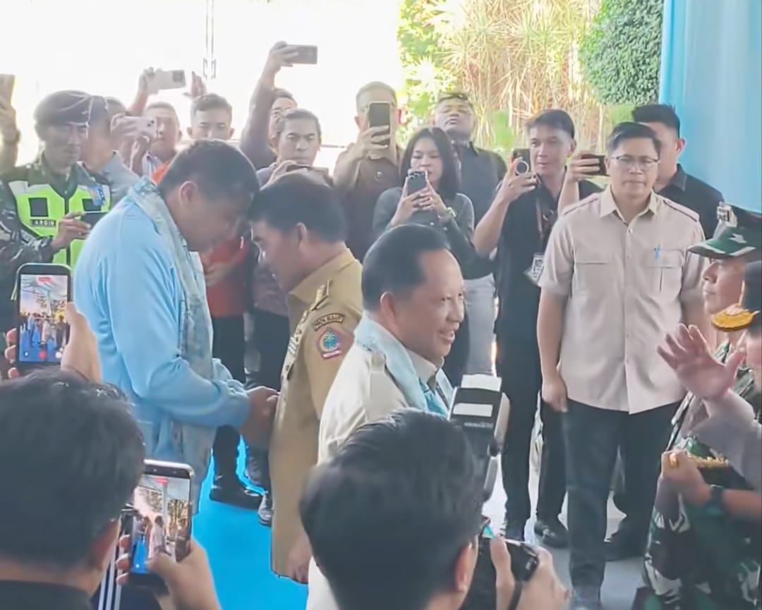 ManadoTEMPO-Gubernur Sulawesi Utara, Yulius Selvanus, menyambut langsung kedatangan Menteri Dalam Negeri Muhammad Tito Karnavian bersama Menteri Perumahan dan Permukiman Maruarar Sirait, Selasa 07 April 2026.